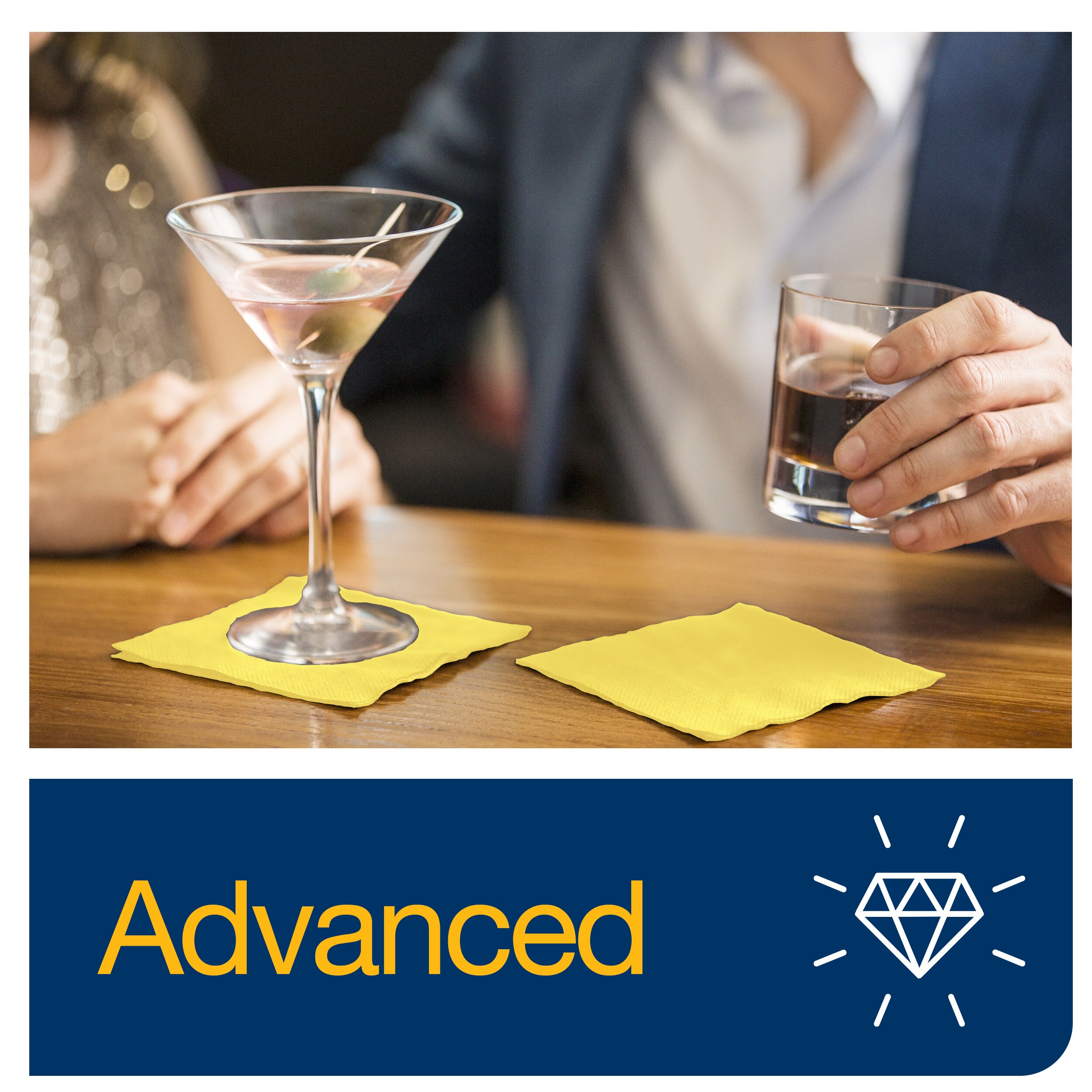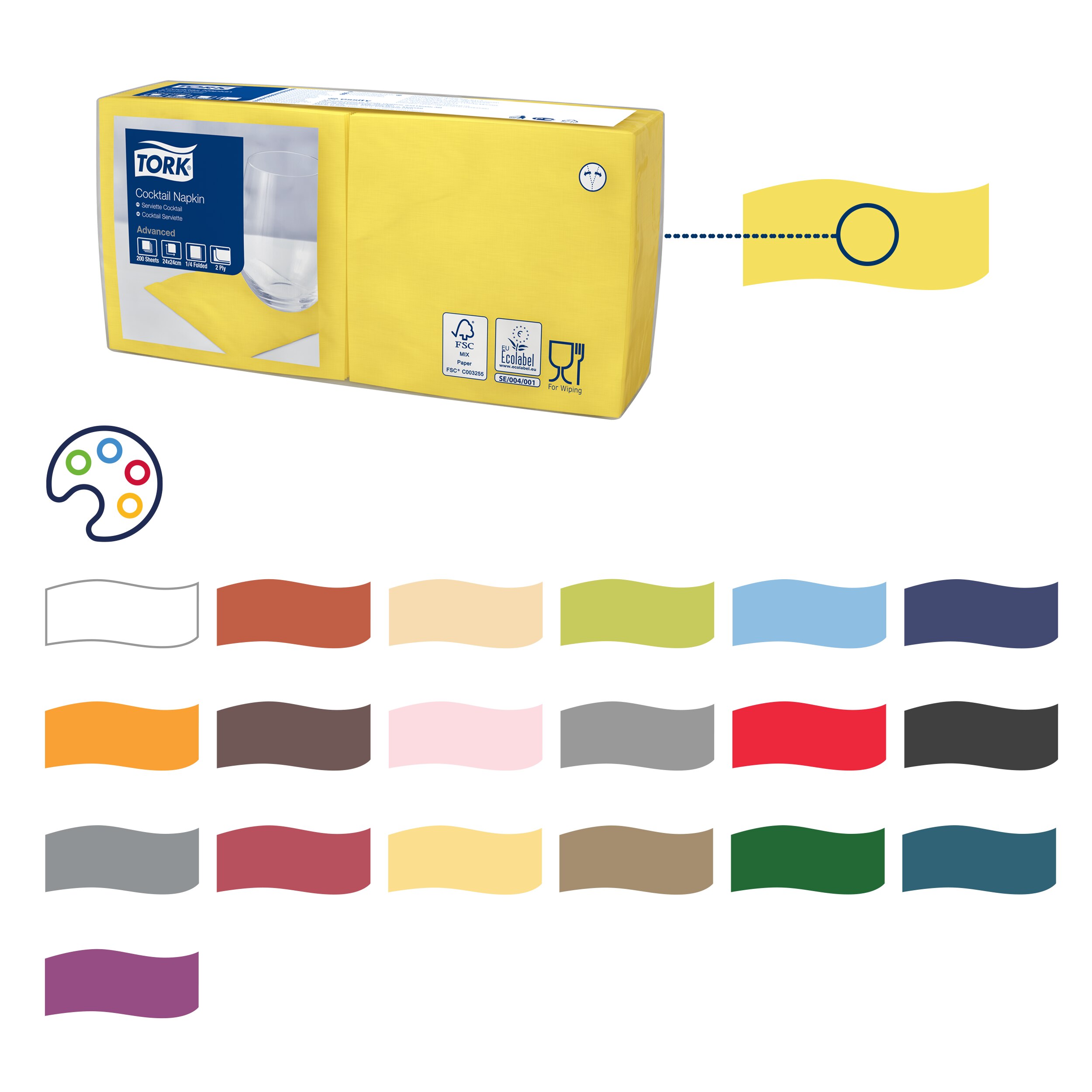 Кольорові коктейльні серветки Tork Advanced підходять для барів та кафе, що пропонують гостям закуски та напої. Завдяки багатому вибору кольорів і відтінків серветок Tork Advanced ви зможете підібрати саме той колір, який найкраще підійде під інтер'єр вашого закладу.
