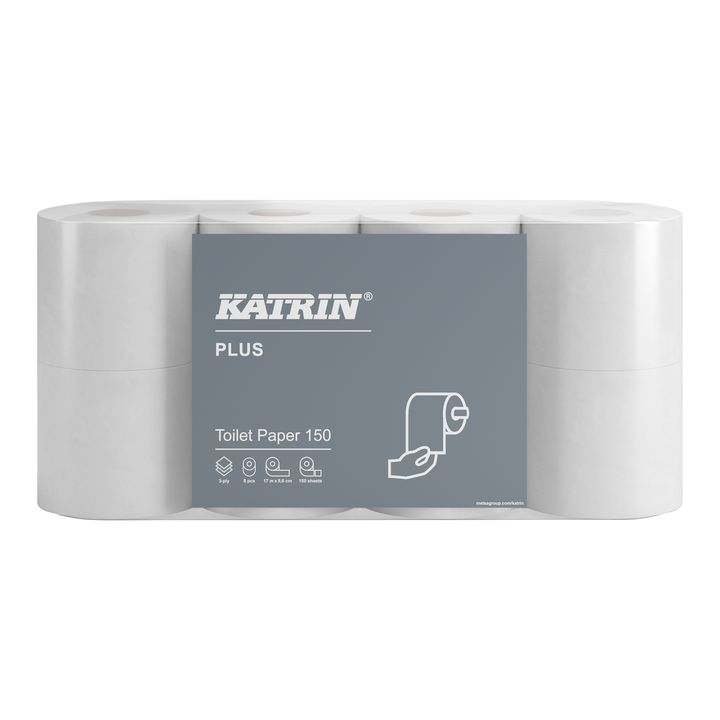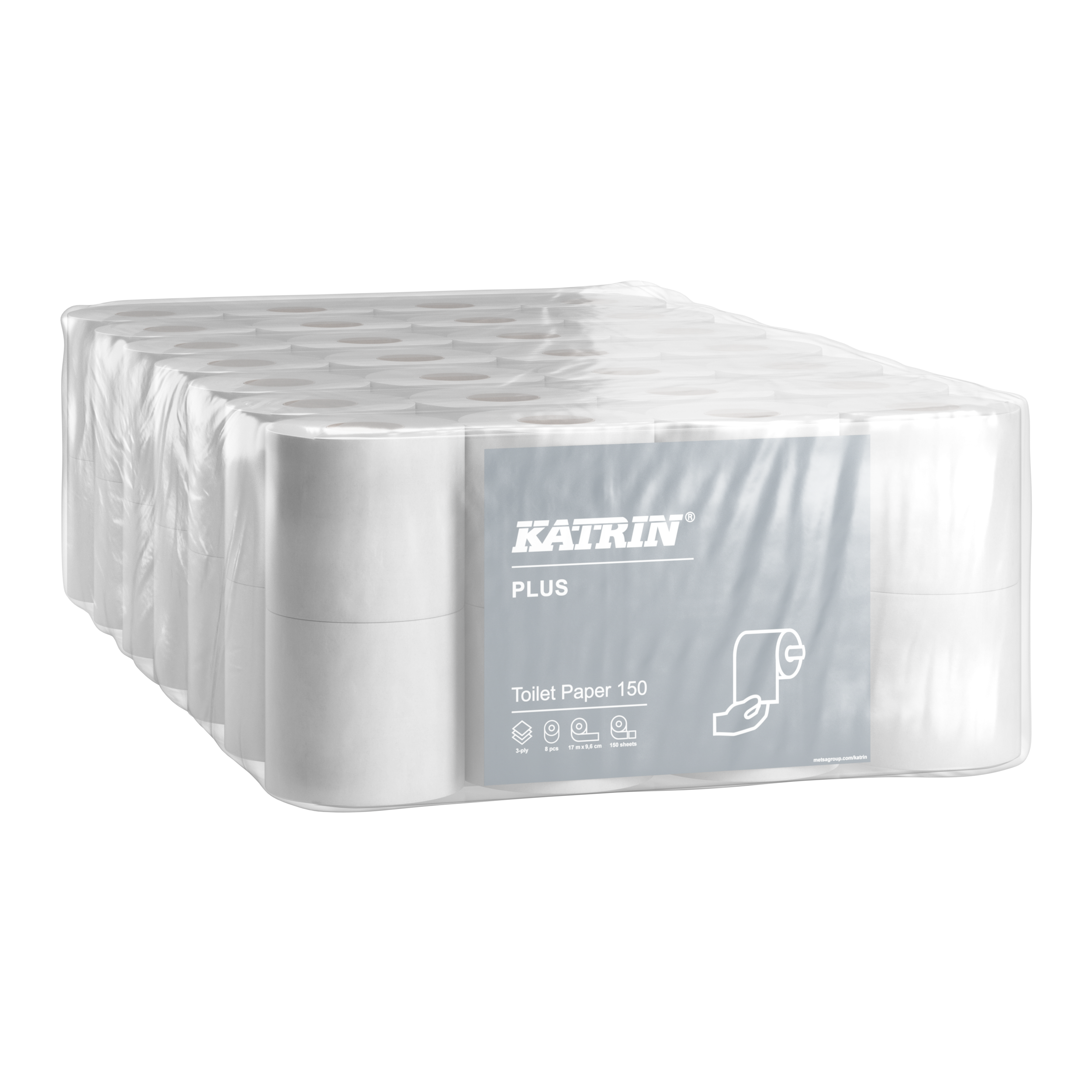 Високоякісний м’який туалетний папір в стандартних рулонах Katrin Plus відрізняється гарною вбираючою здатністю, що досягається завдяки його тришаровій структурі. Підходить для приміщень з низькою і середньою відвідуваністю. Перфорація на порційні листи – запорука економії продукції та зниження рівня відходів.