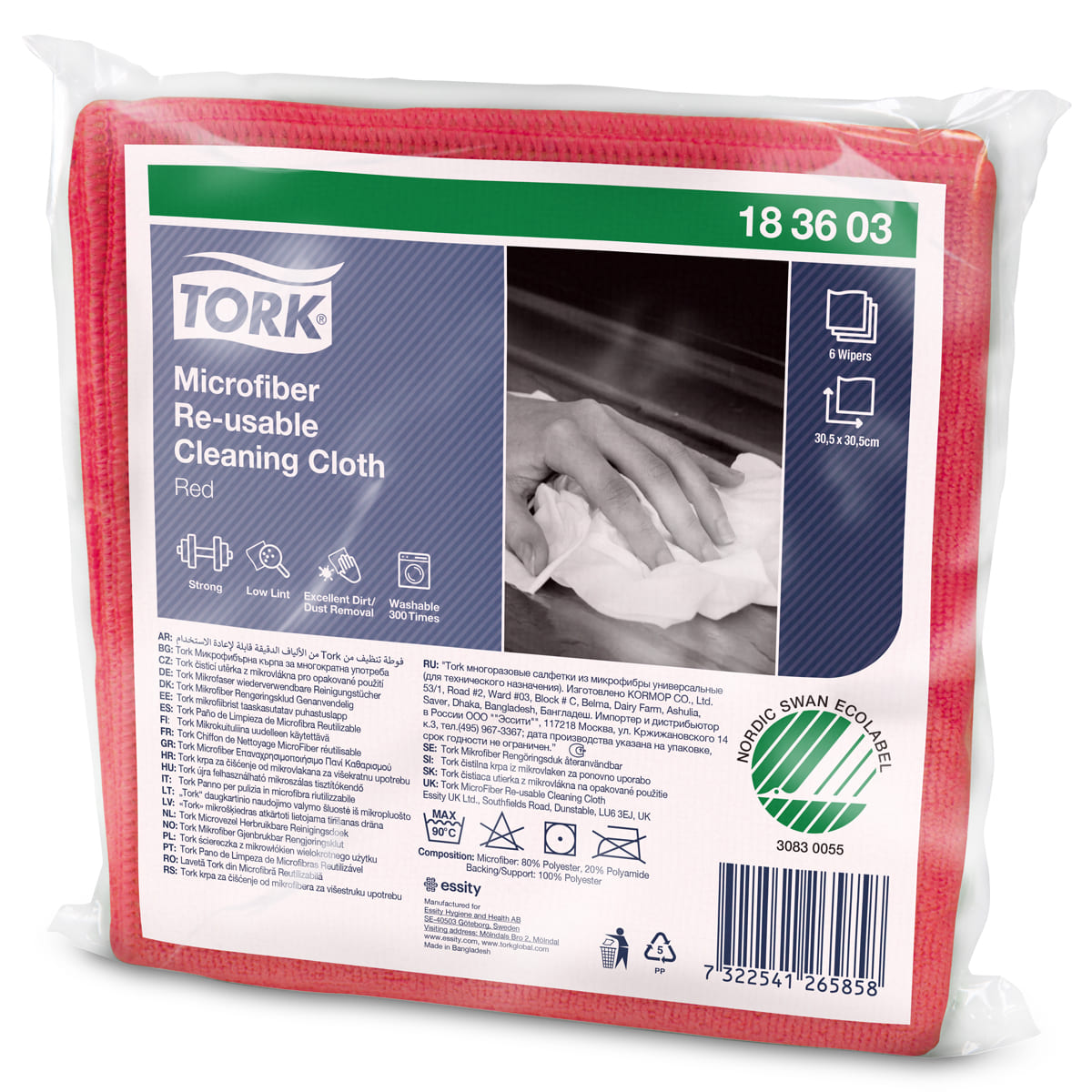 Багаторазові серветки з мікрофібри Tork для чищення - це якісні серветки з низьким вмістом ворсу, що забезпечують гарні результати очищення твердих поверхонь. Можуть використовуватися в сухому вигляді разом з миючими та дезінфікуючими засобами. Виріб призначений для прання та повторного використання, зносостійка тканина з посиленими швами, яку можна прати до 300 разів (при пранні відповідно до рекомендацій CDC/NHS для гарячої води та згідно з інструкціями на етикетці).