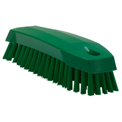Універсальна щітка з ворсом, розташованим під кутом, призначена для чищення столів, конвеєрних стрічок, обробних дошок, відер, великих мірних ковшів і устаткування, де необхідне очищення в кутах. Ця маленька ручна щітка легко очищає поверхні для приготування їжі, обробні дошки і харчові контейнери.