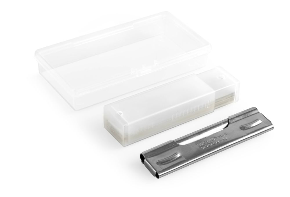 Скребок Filmop з 10 лезами призначений для видалення складного бруду з різного роду поверхонь підлог – кахлю, каміння, лінолеуму, а також зі скляних поверхонь – скла, дзеркала, вікон. Леза упаковані в практичний пластиковий футляр, що забезпечує безпеку та простоту використання. Його можна використовувати з ручкою віконного ракелю для кращого захвату. Леза товщиною 0,2 мм.