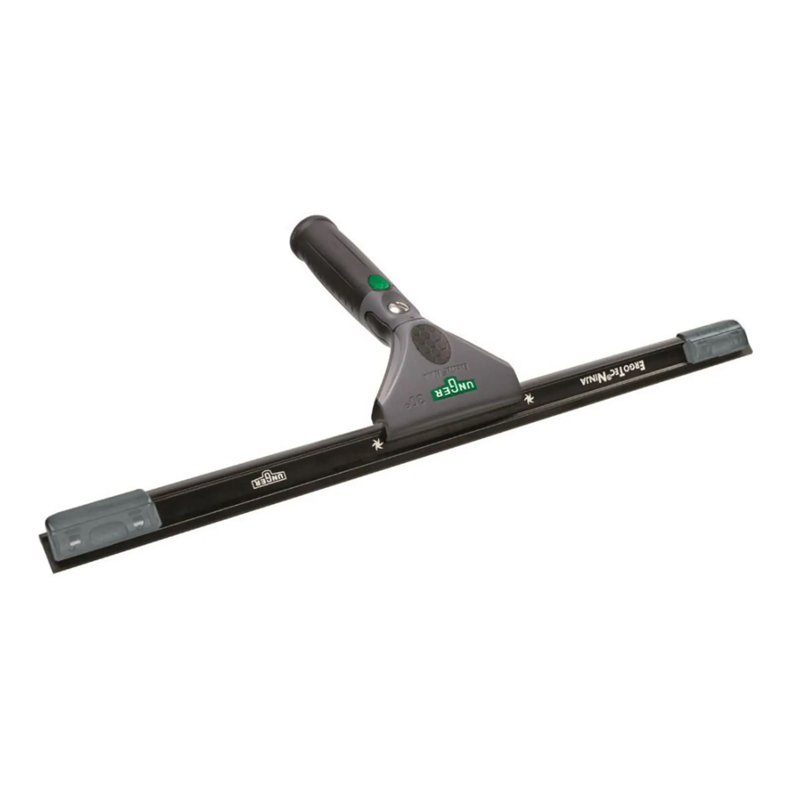 Сучасний згін Unger ErgoTec Ninja для комфортного очищення глянцевих поверхонь. Кнопка блокування дозволяє зафіксувати поворотну головку в центральному положенні. Міцна високотехнологічна алюмінієва планка T6 надійно утримує гуму на скляній поверхні, рівномірно розподіляючи тиск і вимагаючи значно менше зусиль.