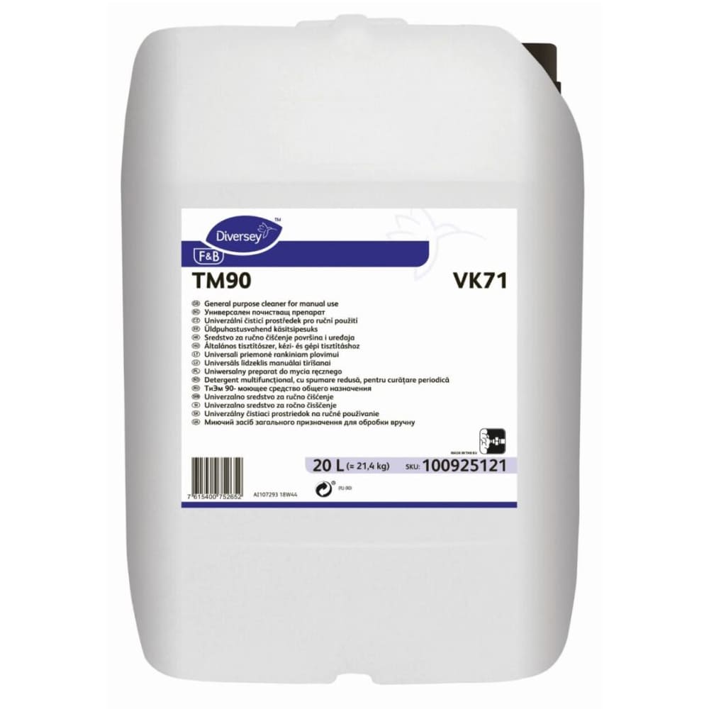 Лужний засіб Diversey TM90 VK71 використовується у харчовій та молочній промисловості. Ефективно видаляє жири тваринного та рослинного походження, а також білкові забруднення з підлоги, стін та різних поверхонь, у тому числі поверхонь для приготування їжі. Крім того, засіб рекомендується для миття зовнішніх поверхонь на переробних підприємствах та миття транспортних засобів.