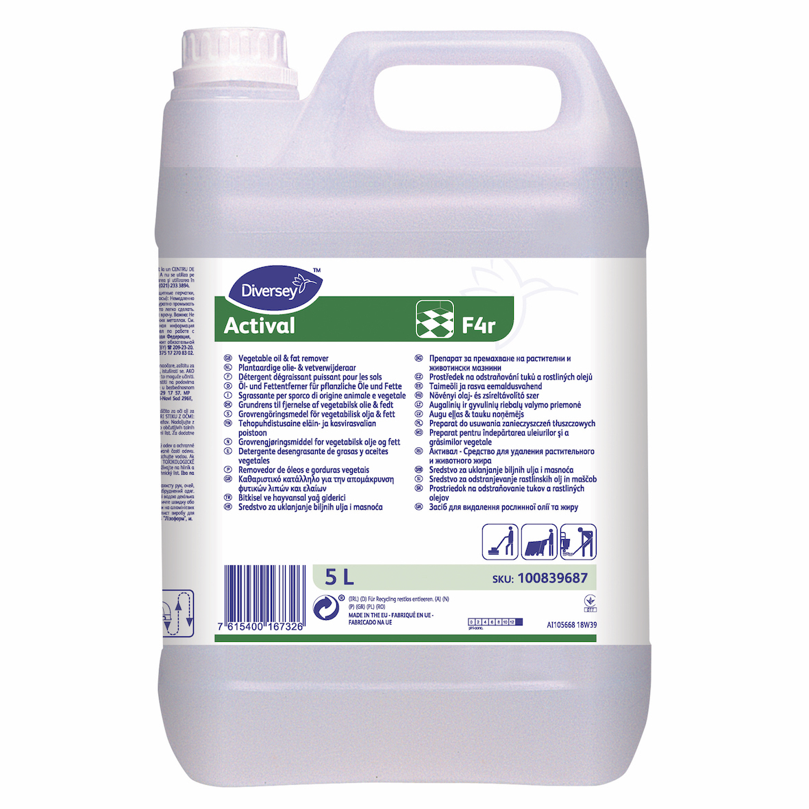 Лужний миючий засіб TASKI DI Actival застосовується для видалення жирів та олій, а також застарілих жирових забруднень. Завдяки відсутності барвників та ароматизаторів, засіб добре підходить для застосування у харчовій промисловості. Має низьке піноутворення і хороші емульгуючі властивості. Видаляє забруднення, бруд і маслянисті плями з твердих водостійких поверхонь. Особливо підходить для очищення сильно забруднених пористих поверхонь. Добре утворює емульсію.